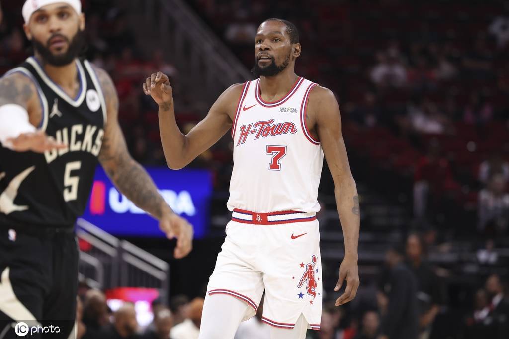 火箭队首发:里德-谢泼德、阿尔佩伦-申京、凯文-杜兰特、阿门-汤普森、小贾巴里-史密斯